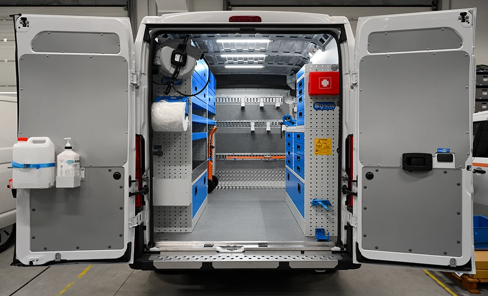 Este es el verdadero arte de los especialistas en equipamiento para furgonetas: concentrar la misma funcionalidad de decenas de metros cuadrados de superficie industrial en un espacio de 3x2 metros.