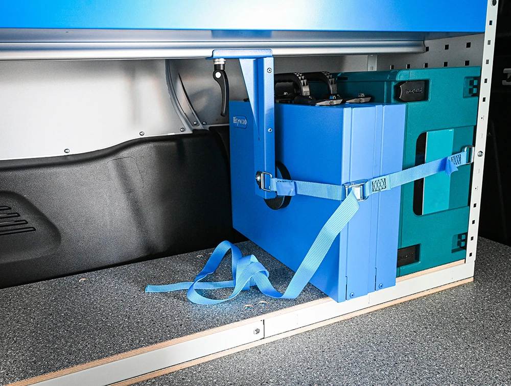 Los maletines son un accesorio fundamental para el trabajador en movimiento: por lo tanto, es vital reservar en la furgoneta compartimentos equipados adecuadamente donde puedan colocarse y bloquearse durante los desplazamientos y de donde puedan extraerse fácilmente cuando se necesiten.