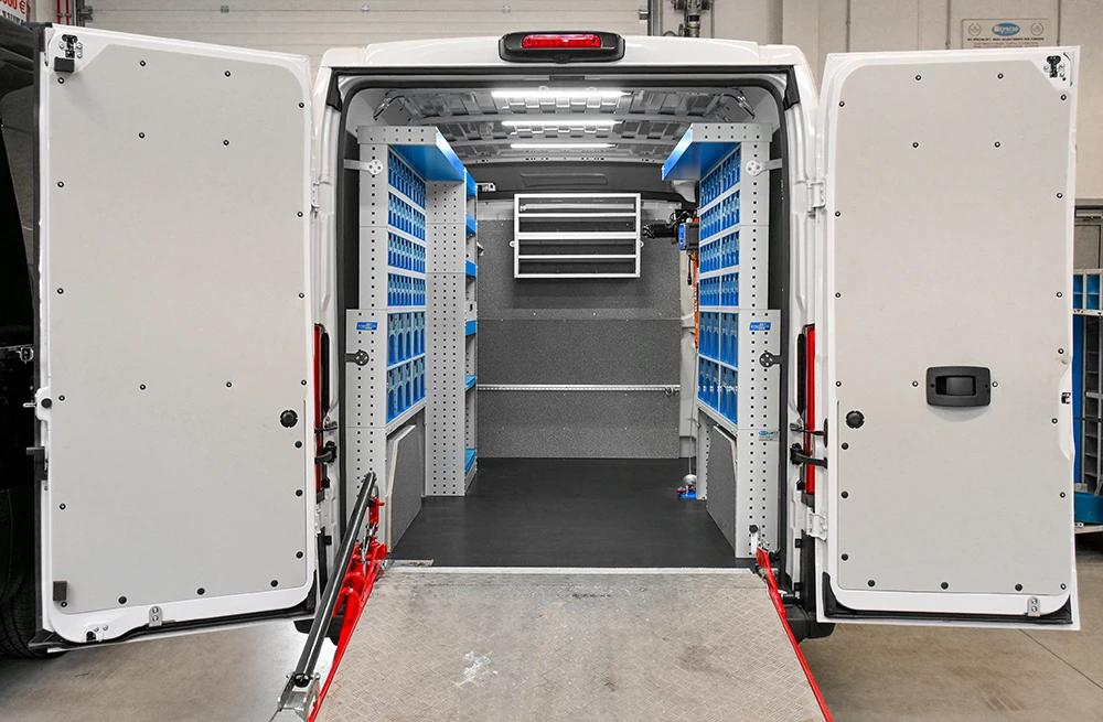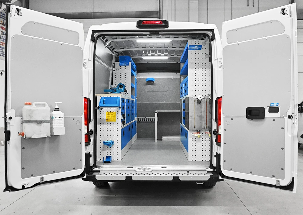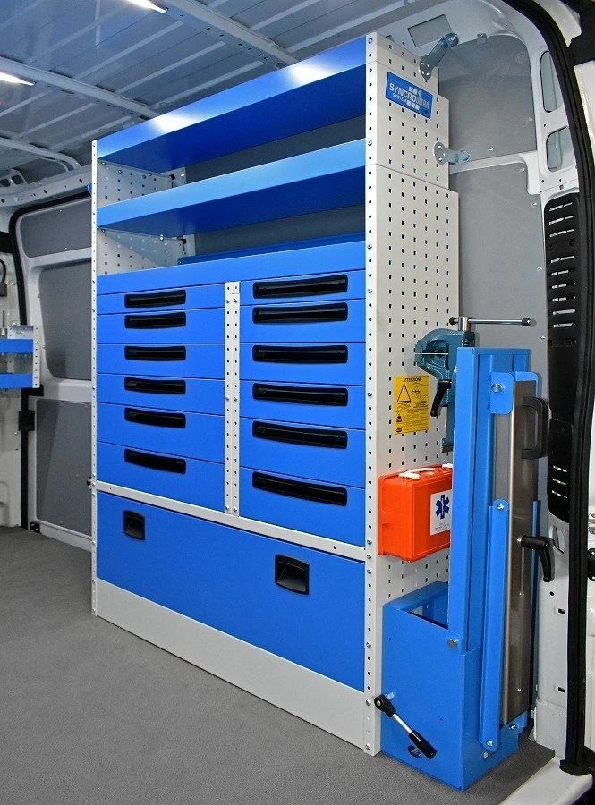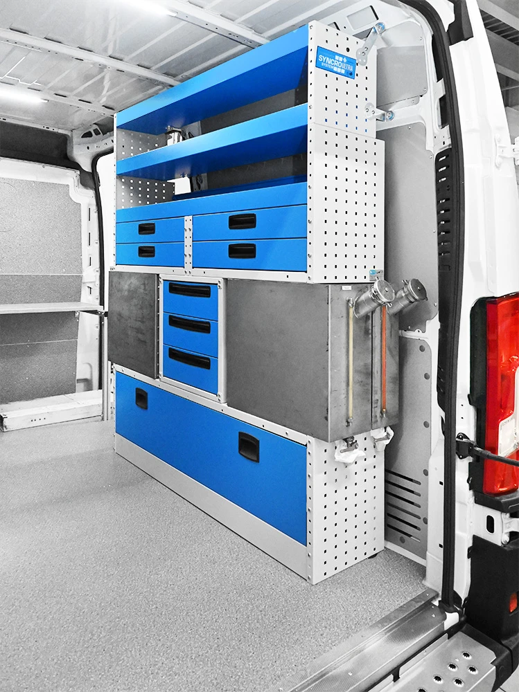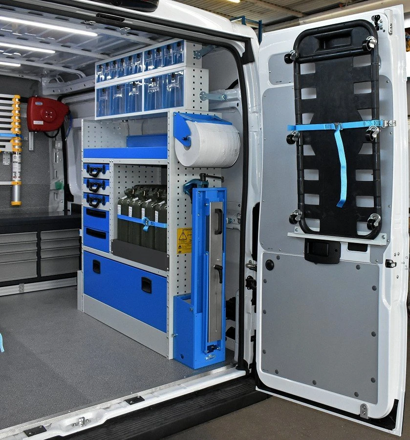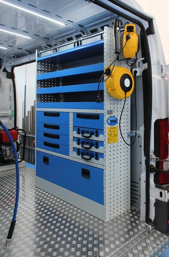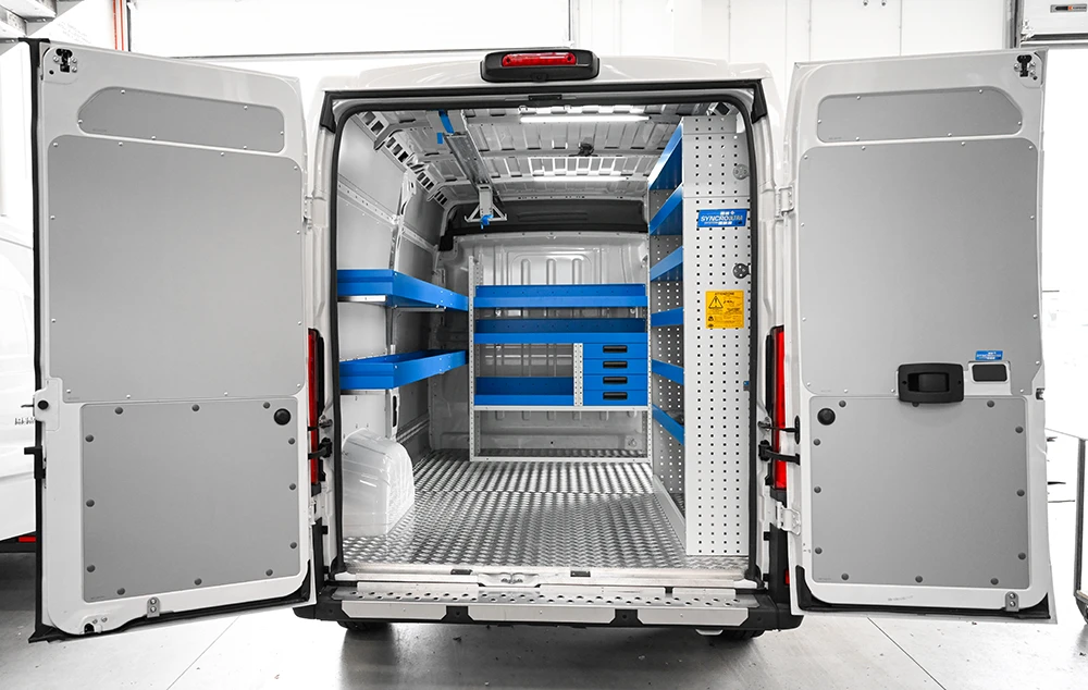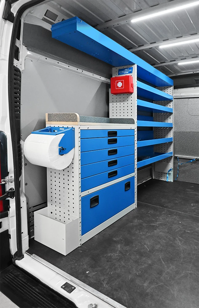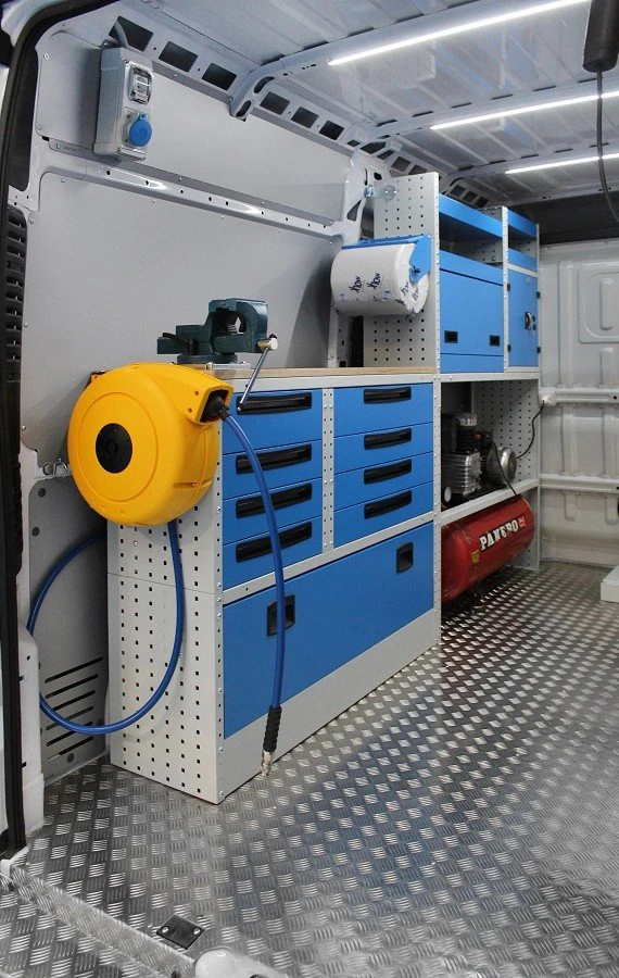 Equipamientos para furgonetas Opel Movano con estanterías y cajoneras modulares, prácticas y funcionales.