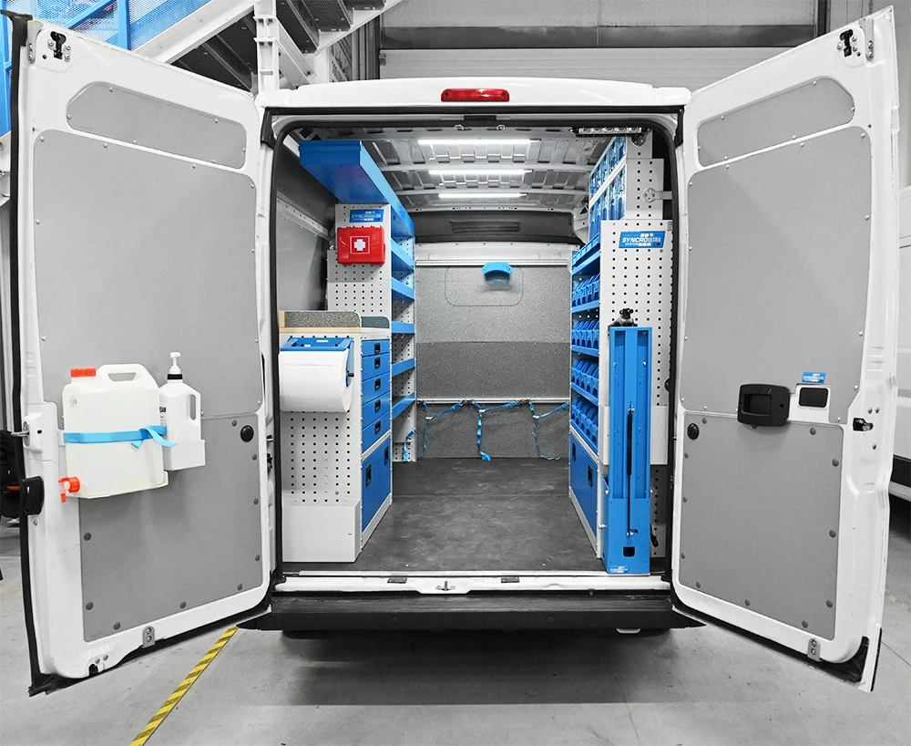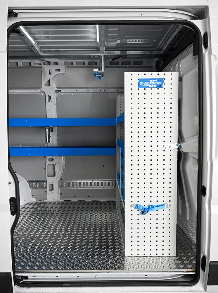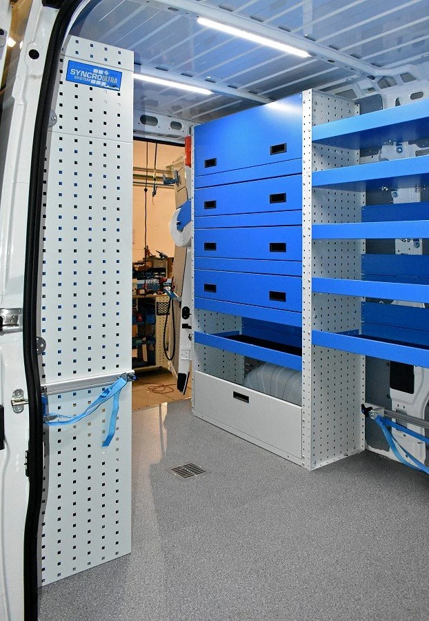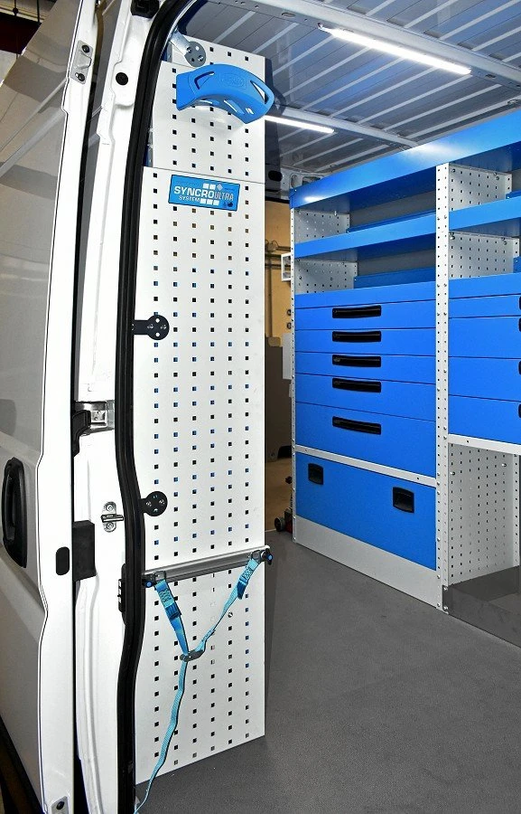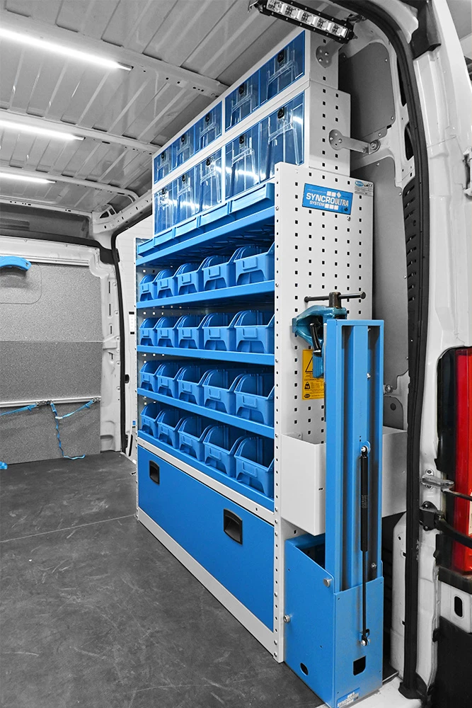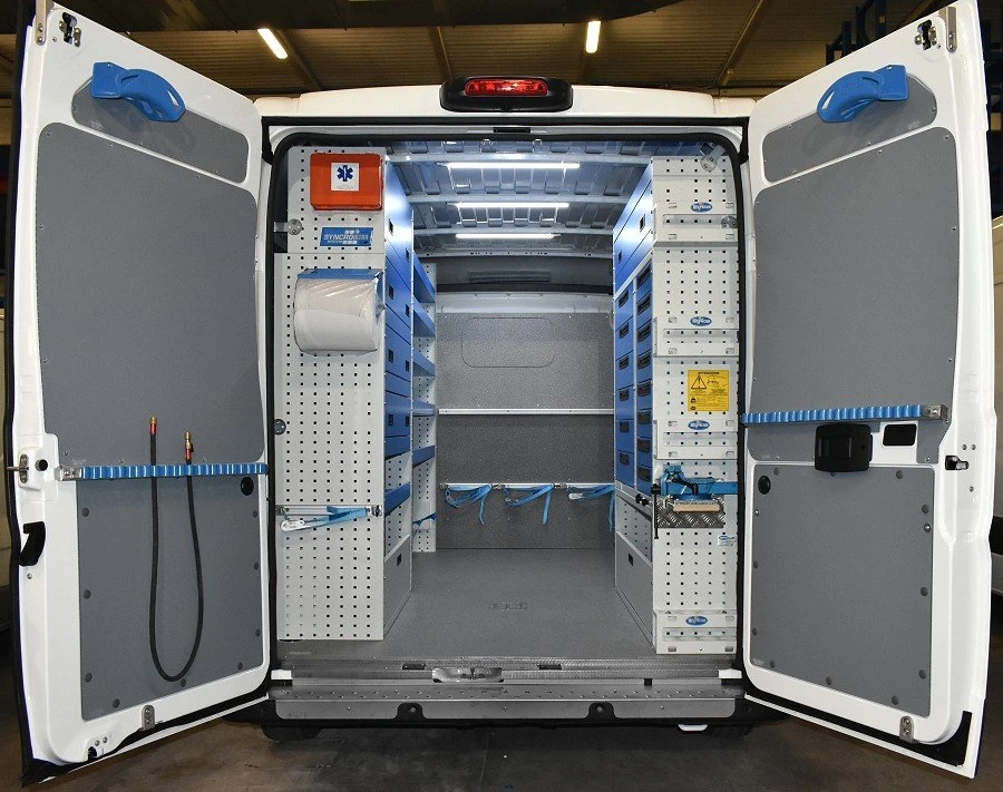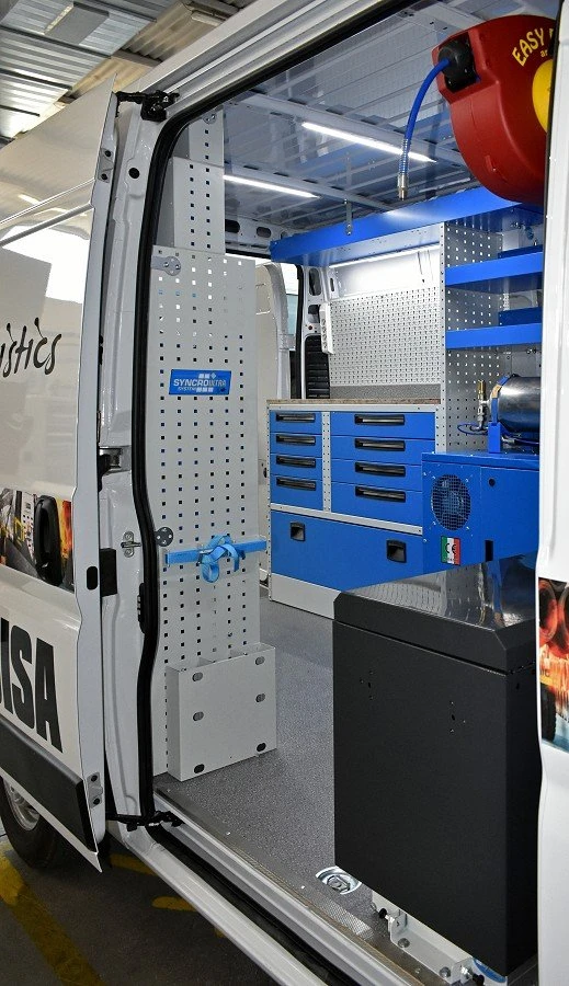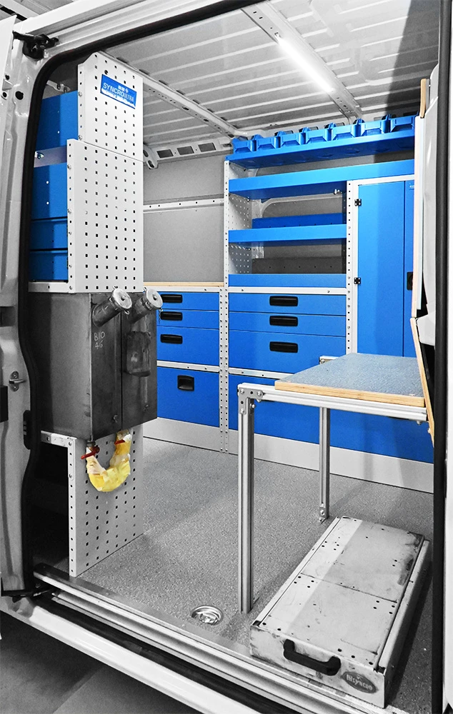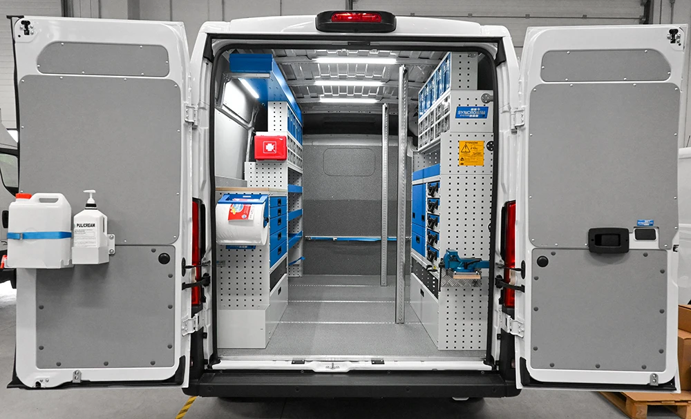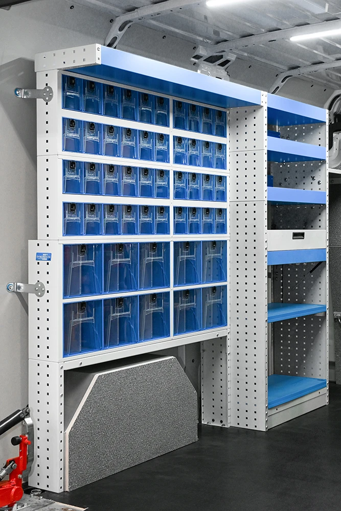 Equipamientos para furgonetas Opel Movano con estanterías y cajoneras modulares, prácticas y funcionales.