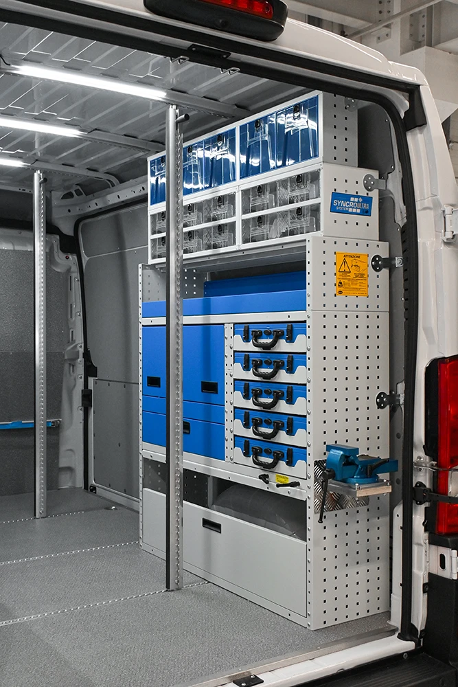 Gracias a los equipamientos Syncro no tendrás que perder más tiempo buscando instrumentos y material porque todo estará ordenado y guardado en recipientes, cajones y maletines.